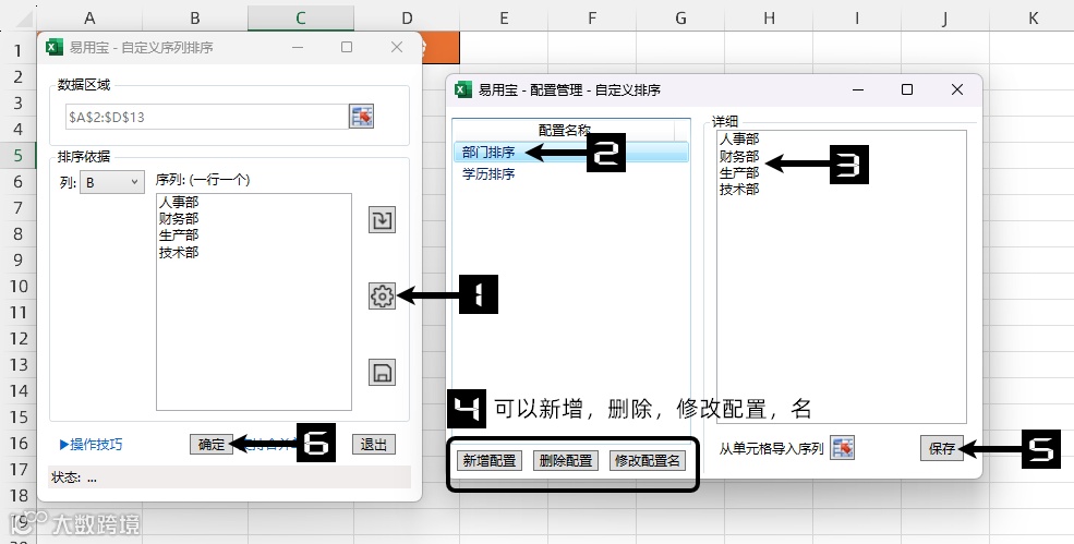 对于已设置的配置,可以导入已有配置做自定义序列排序。