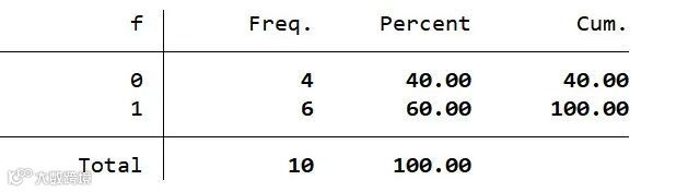 tabulate f, nolabel //显示原始数据,而不是其标签值