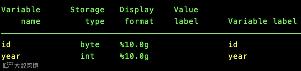 describe id year //精准定位特定变量