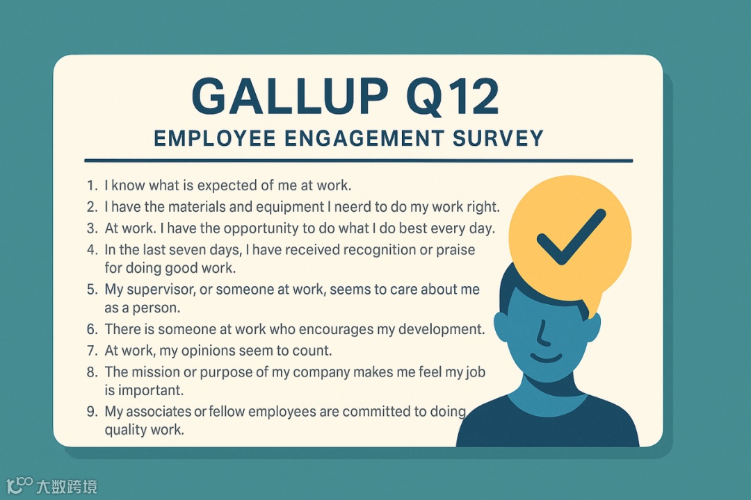盖洛普的Q12调查通过12个核心问题评估员工需求,涵盖了影响敬业度的关键领域。