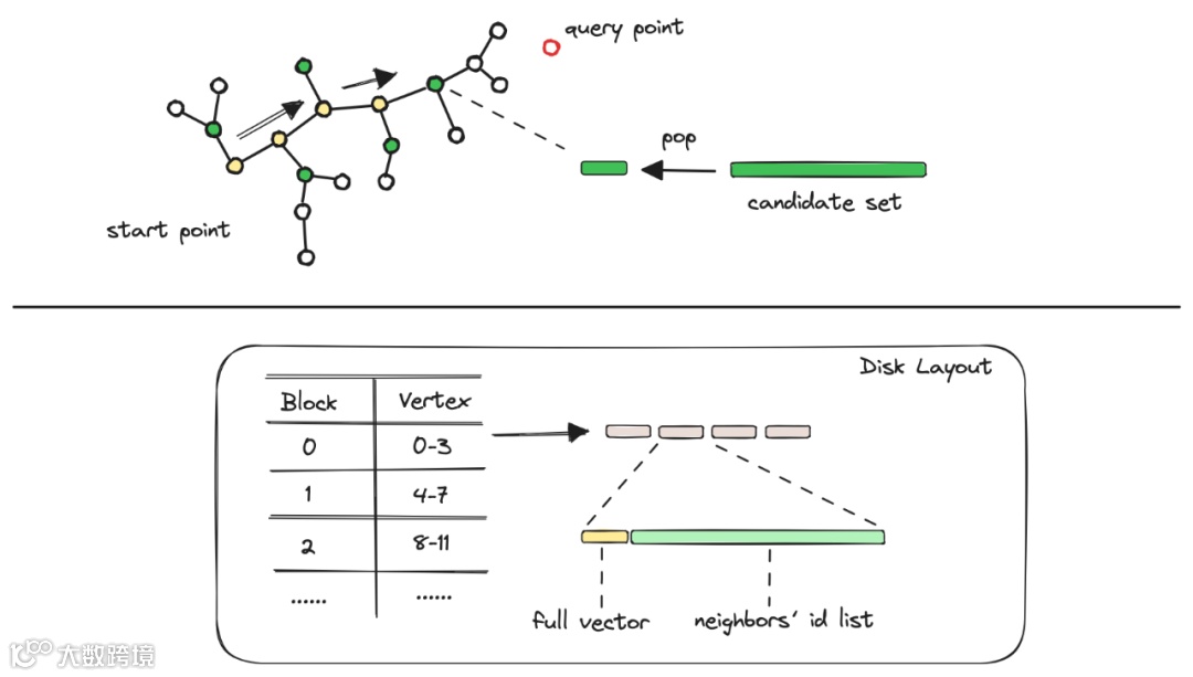 3.创建磁盘图结构,向量数据和邻接节点紧凑排列: