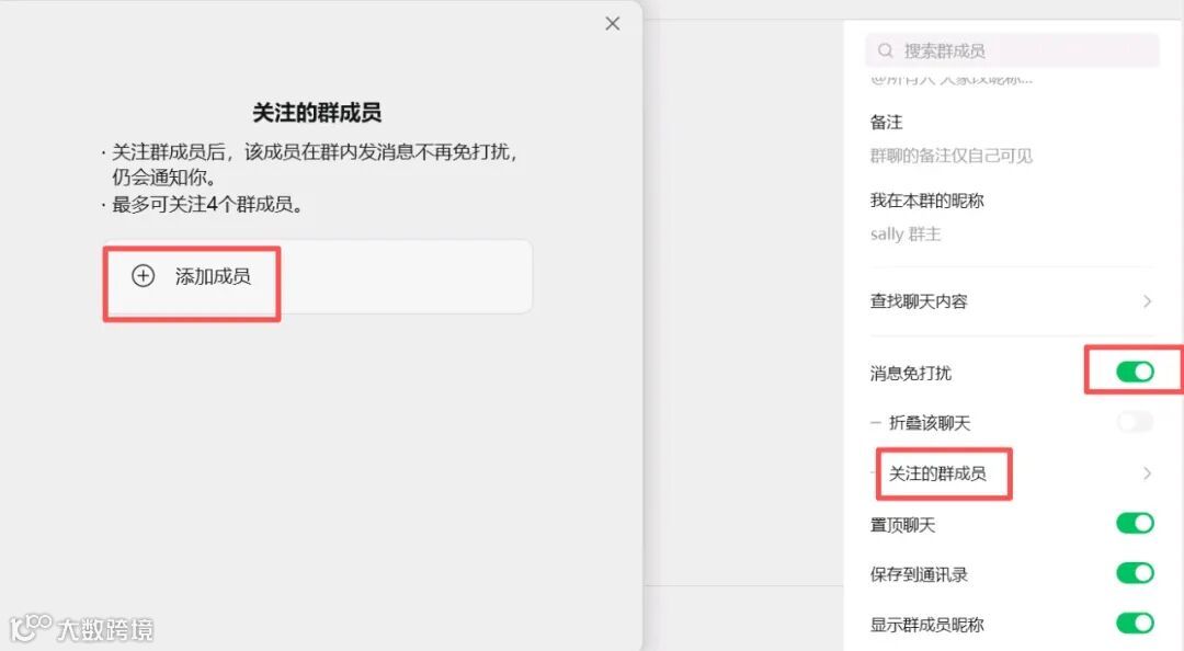 接着,下面会有一个 「关注的群成员」 的选项,点进去。