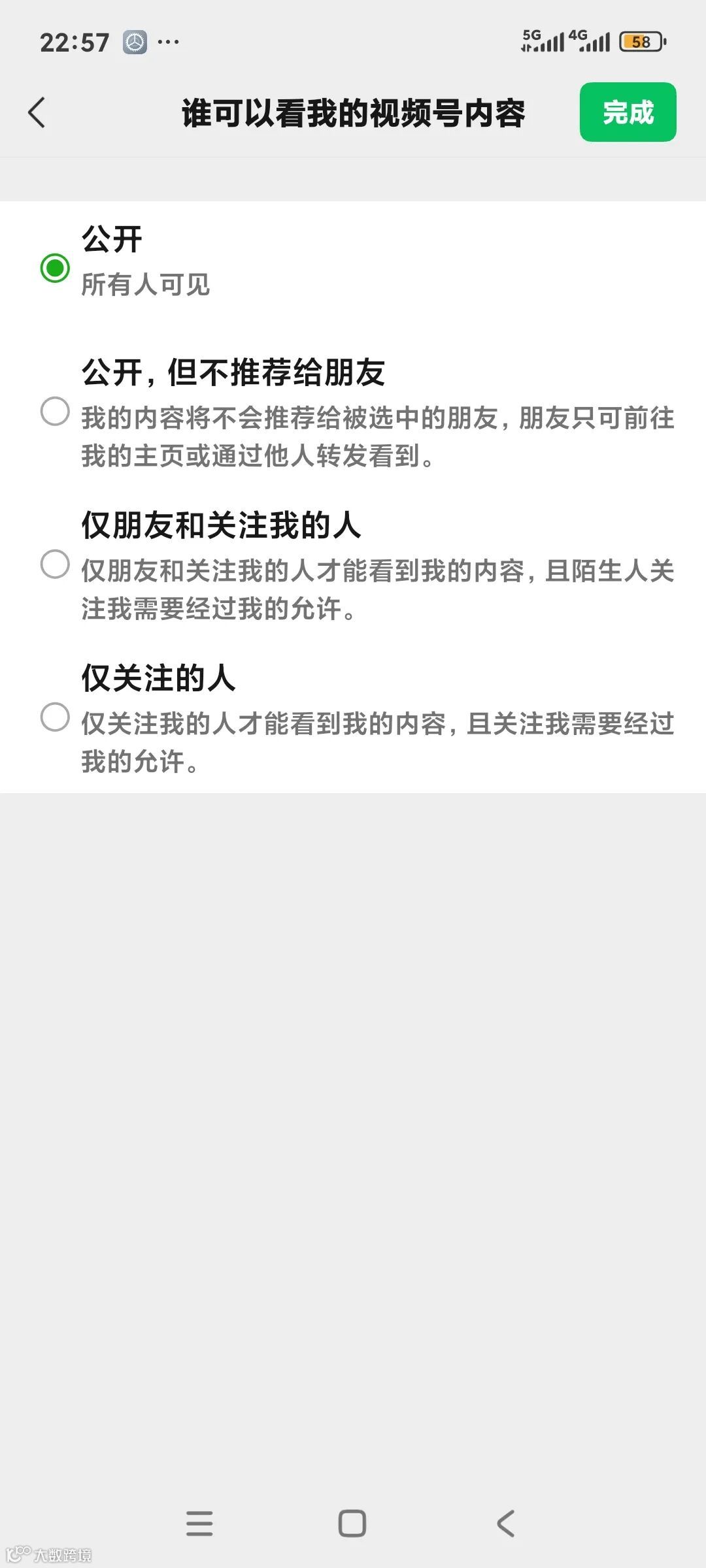 还可以设置成视频 号仅关注的人,且要经过我的允许。这样更安全。