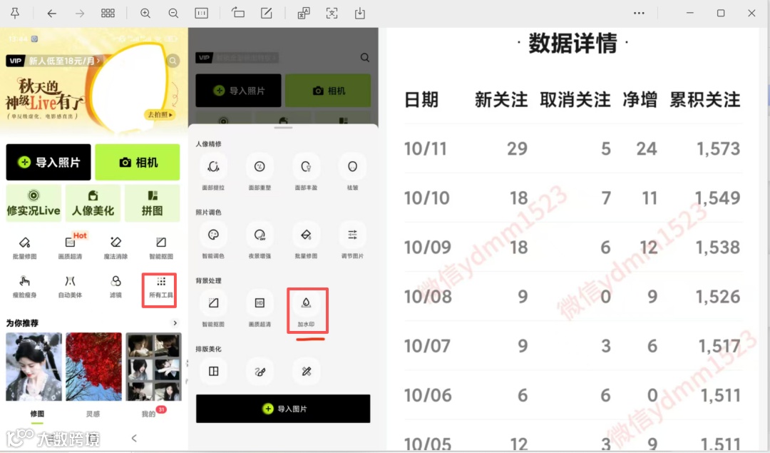 提示:若需批量添加水印,可使用「批量修图」功能,导入多张照片后统一应用模板,提高效率。