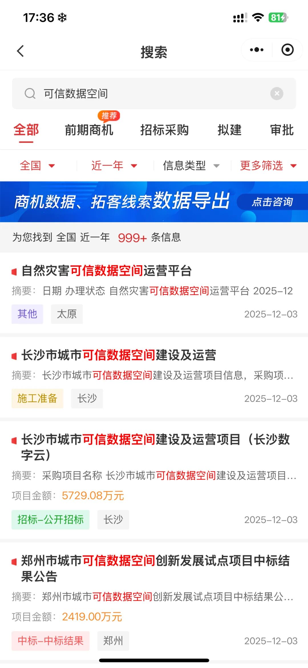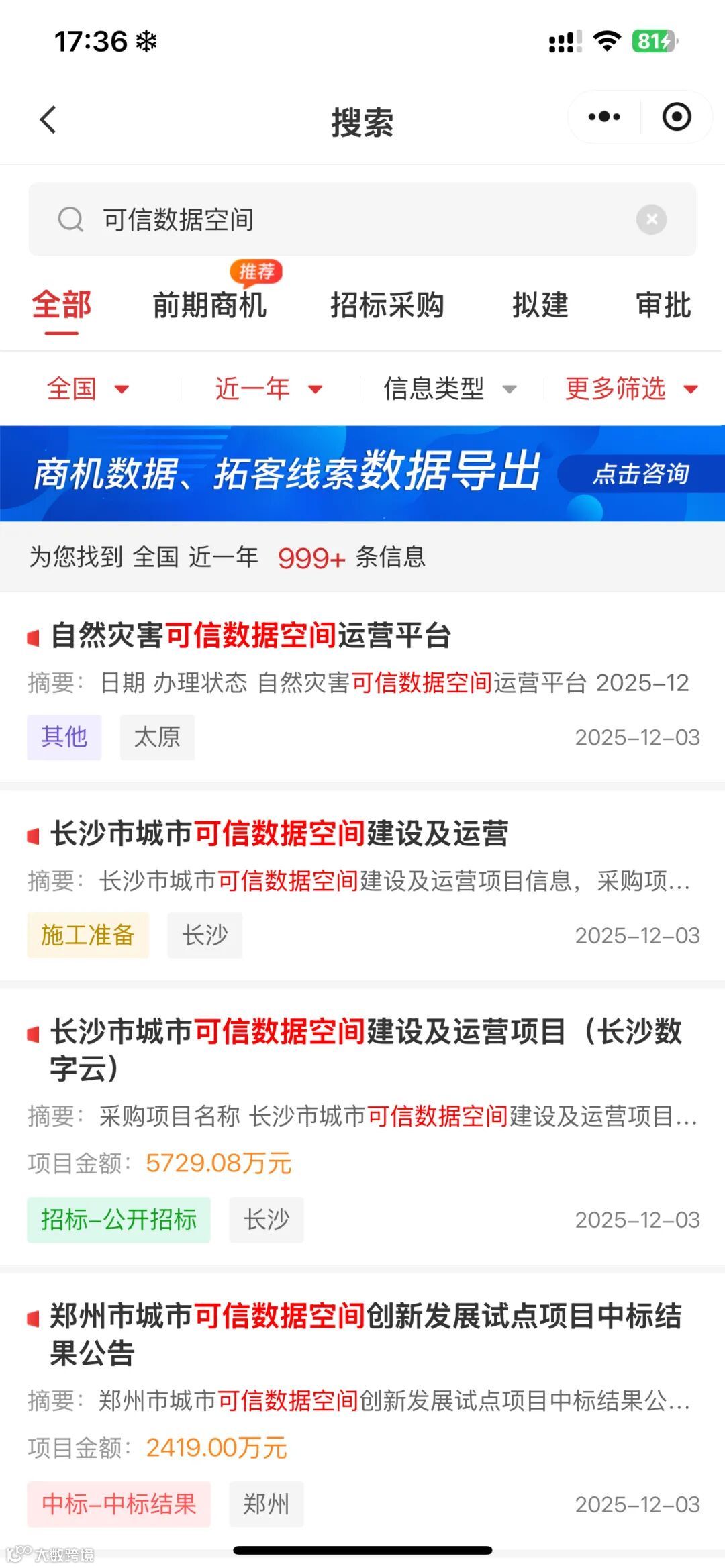 2025 年 11 月 3 日,郑州数智科技集团有限公司发布《郑州市城市可信数据空间创新发展试点项目》招标公告。