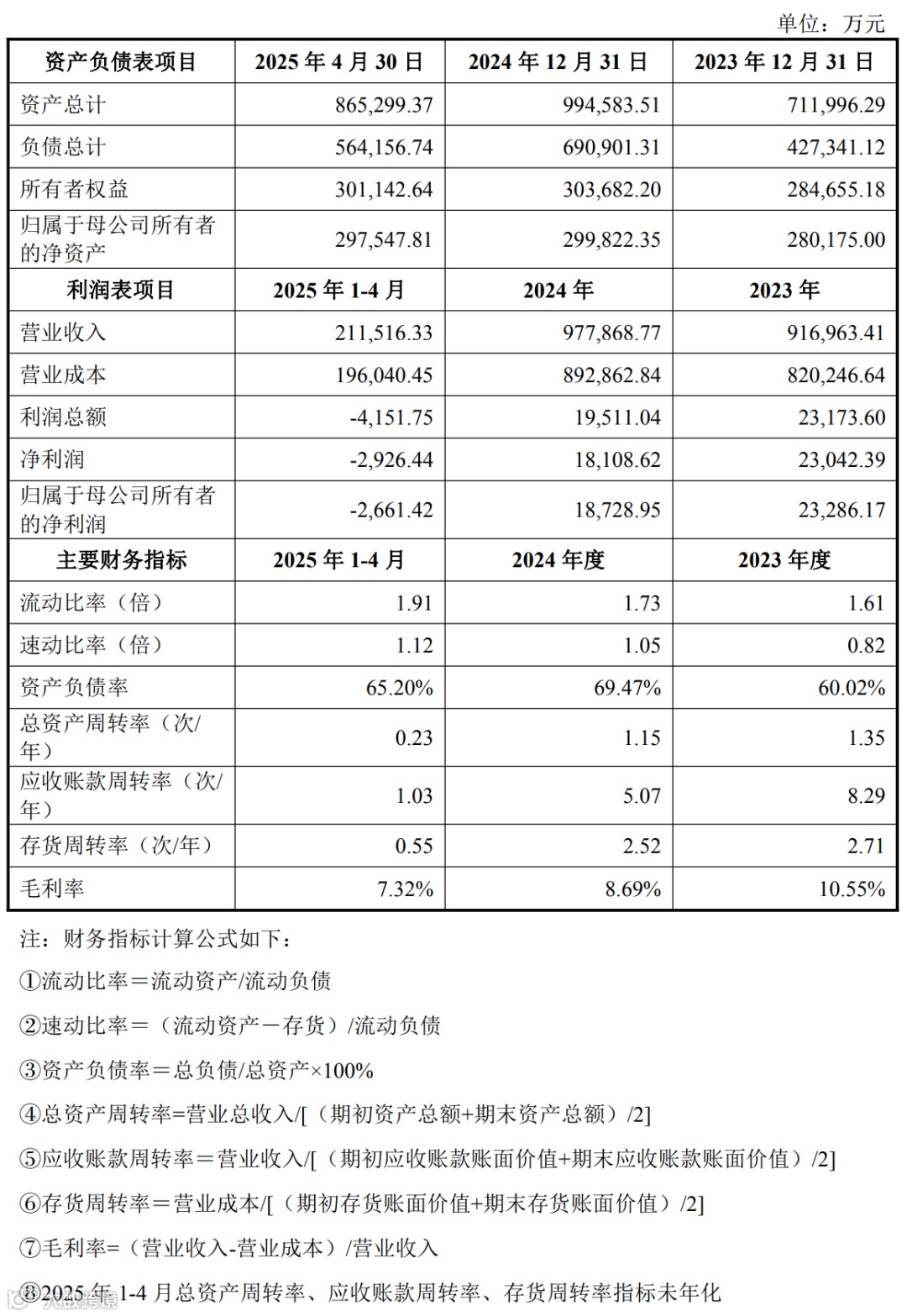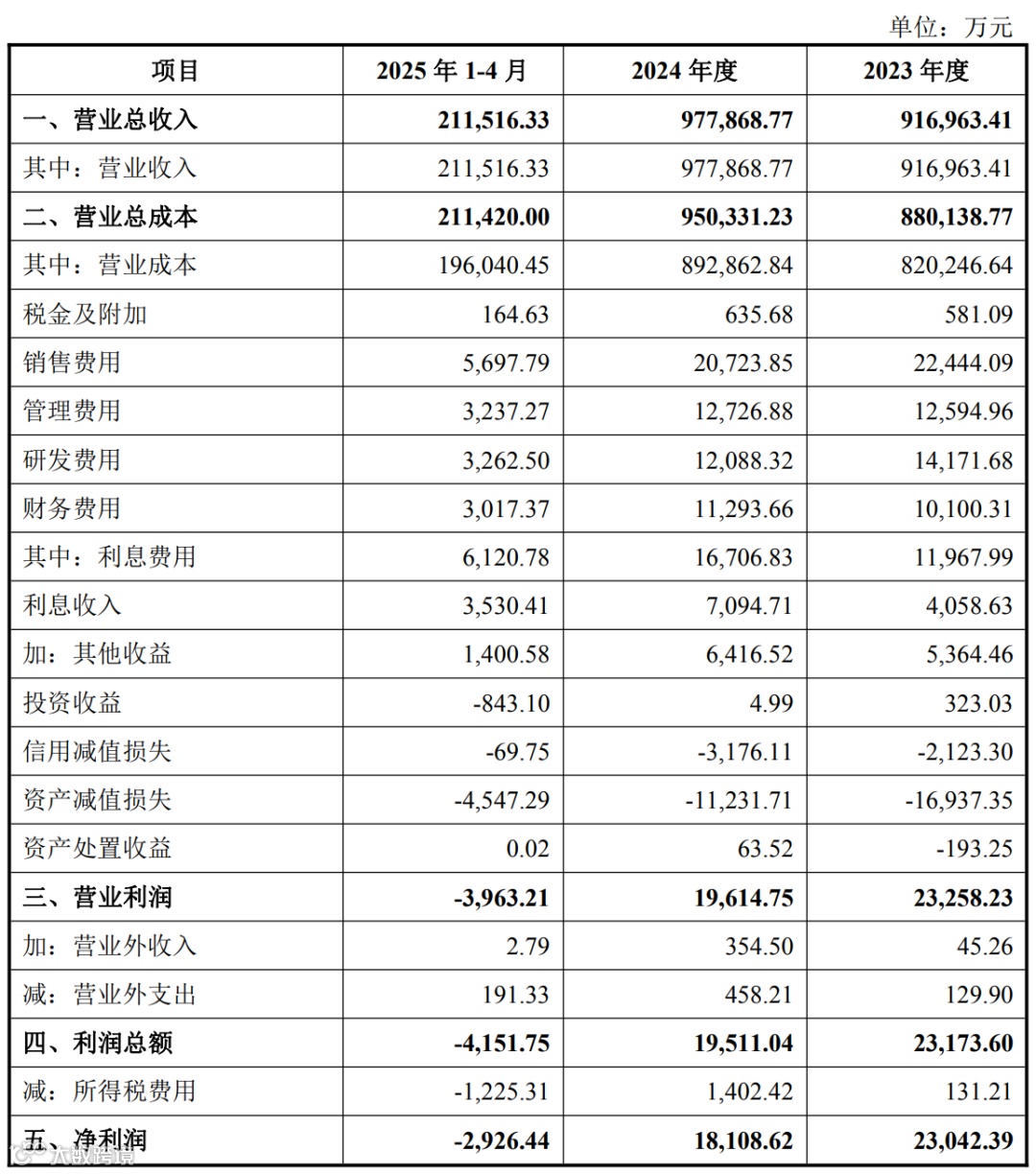 宝德计算 2023 年至 2025 年 1 月 至 4 月,营收分别为 91.7 亿、97.79 亿、21.15 亿;净利润分别为 2.3 亿、1.81 亿、-2926 万。