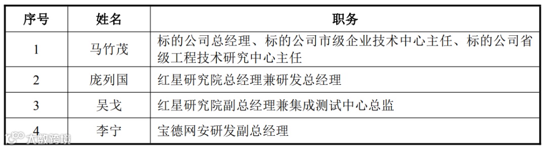 核心技术人员: