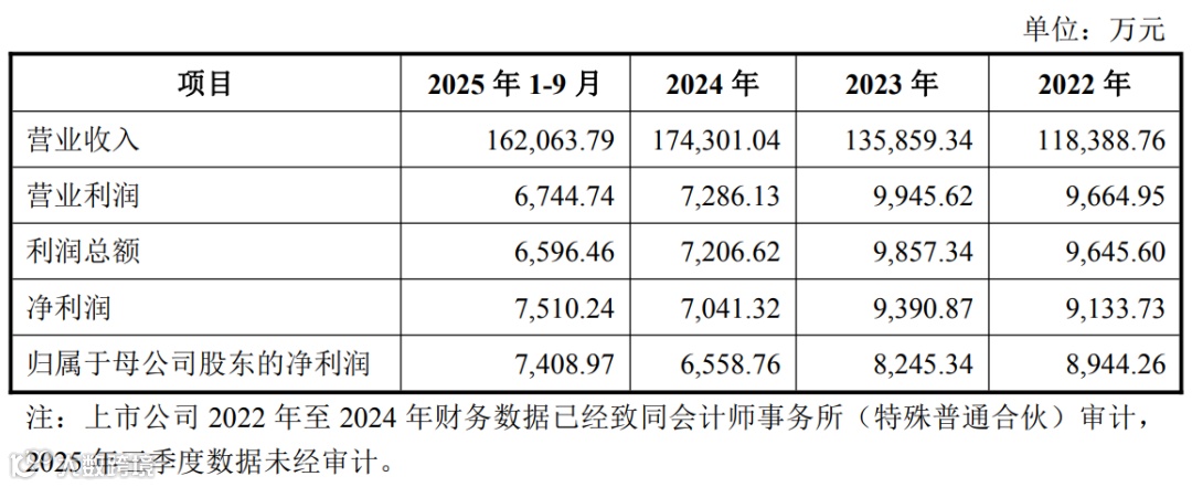 2022 年至 2025 年(1 月至 9 月),慧博云通营收分别为 11.84 亿、13.29 亿、17.43 亿、16.21 亿;净利润分别为 9134 万、9391 万、7041 万、7409 万。