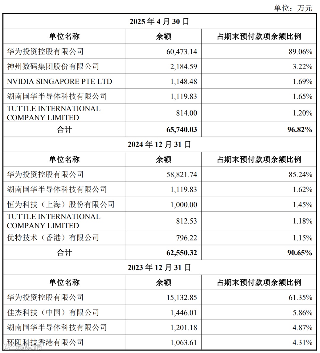 预付款项前五名情况如下: