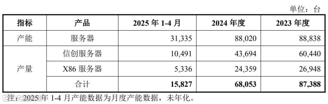 标的公司主要产品为服务器,生产活动主要通过自主生产的形式开展。报告期内,标的公司的主要产品服务器的产能及产量情况如下: