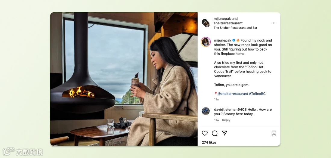 Instagram上的网红可以发布他们去你的酒店或餐厅的经历,在他们的日常故事中使用你的产品,或者与你的品牌账户合作,帮助它吸引新的粉丝。