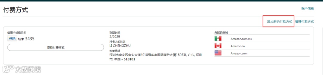 添加新的付款方式(把这个信用卡信息再添加一遍)。