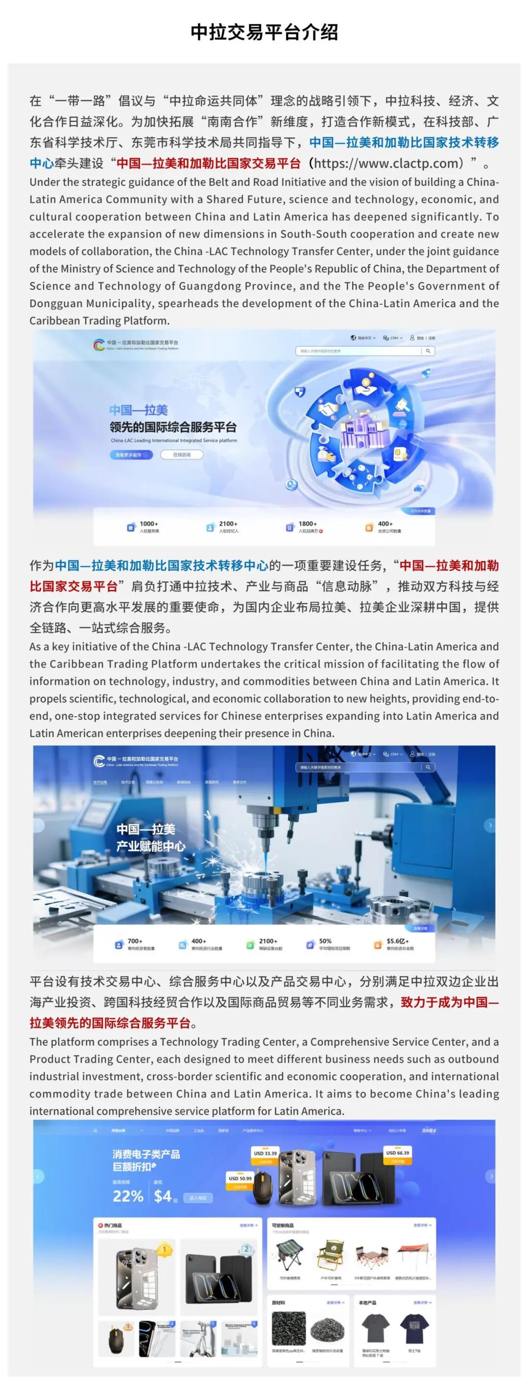 活动期间,"东莞优品全球直供Guanmall服务平台"与"松山湖低空场景创新服务中心"双平台同时启动,为东莞数字贸易港构建起"线上交易+线下场景"的一体化服务体系。中拉交易平台作为连接中拉贸易的重要桥梁,将积极推动GuanMall与拉美地区采购商对接,助力"东莞智造"深度融入拉美产业链。