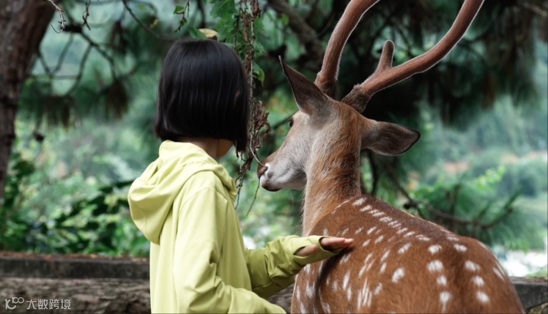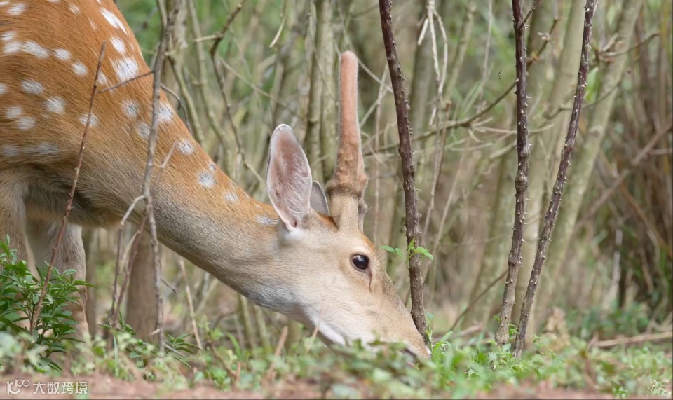 梅花鹿群在山间放养,采食山里羚羊藿、何首乌等野生中药材,生长出高品质鹿茸。