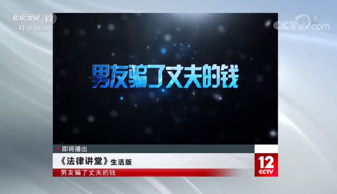 节目回顾 2021年4月6日晚间18:50,周旭亮律师在中央电视台CCTV-12《法律讲堂》主讲的“男友骗了丈夫的钱”圆满播出,获得观众广泛好评。 |