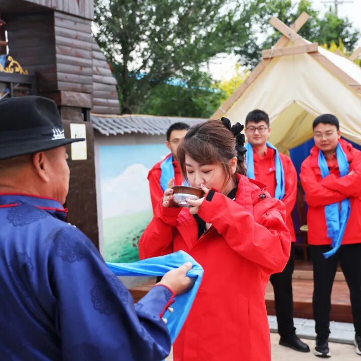 清晨,营地的蒙民以别样的方式送别我们,这是当地送别贵客的特色——上马酒。热情的蒙古族老爷爷为我们斟满酒,在悠扬的祝福歌声中,为我们送上哈达,同时也是最真挚的祝福。