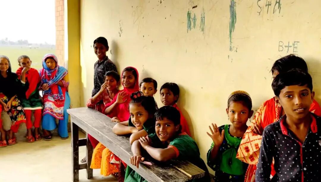 帕拉喀拉小学所在的村镇坐落于海边的滩涂之上,远离城市和交通枢纽,从首都达卡出发需要乘坐十几个小时的车然后再乘坐一个小时的小船才能抵达,行车途中还要过两次轮渡,一路道路颠簸拥堵,四处无遮挡的小船既不防晒也不避雨,雨季的时候瓢泼的大雨经常把人浇个透心凉。