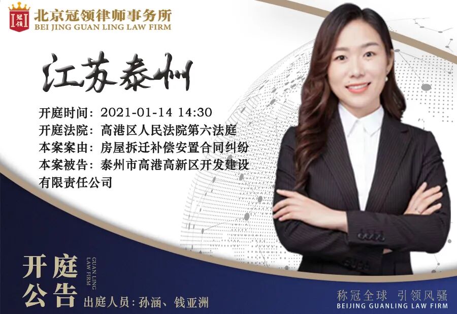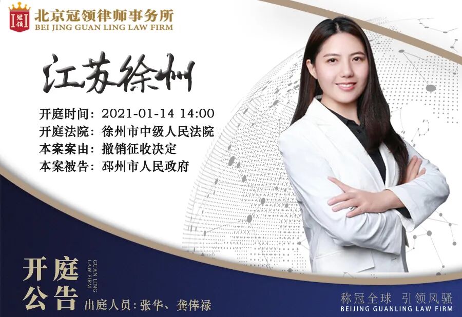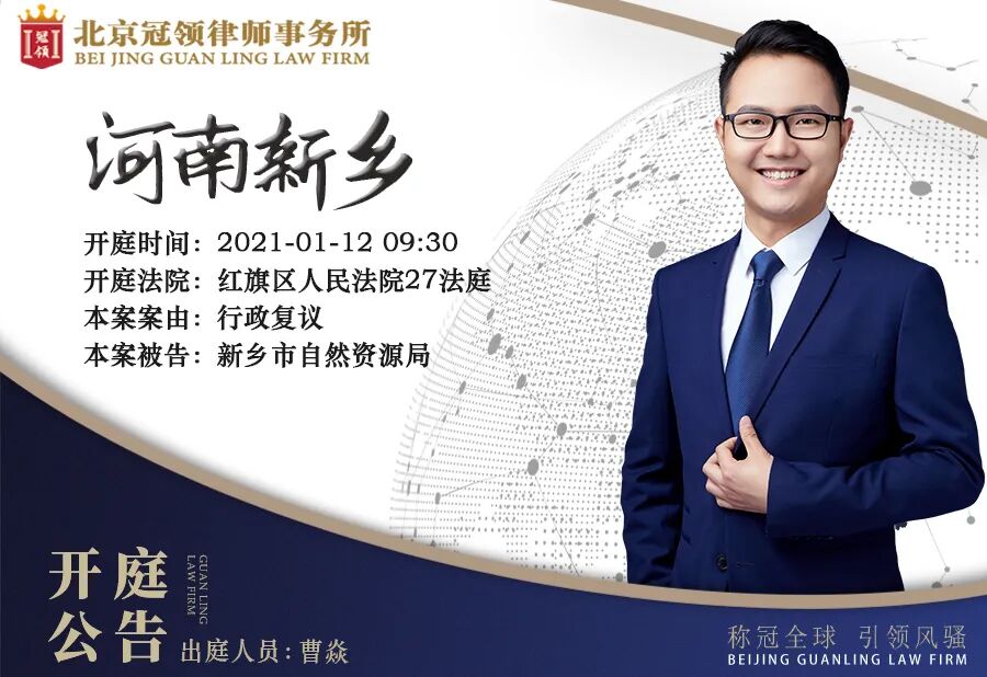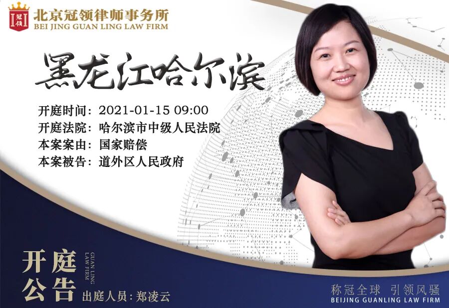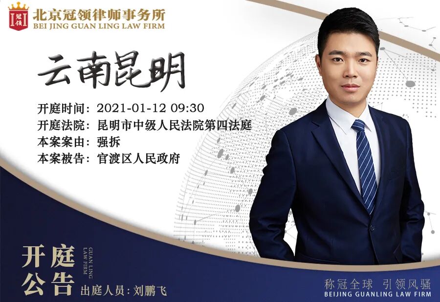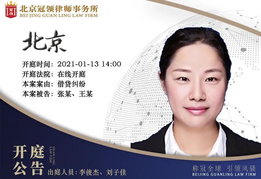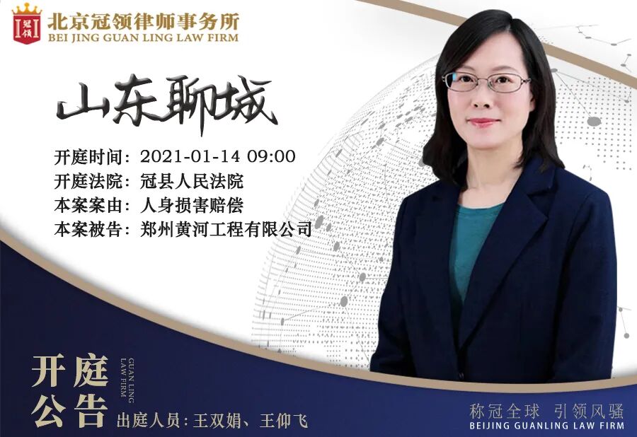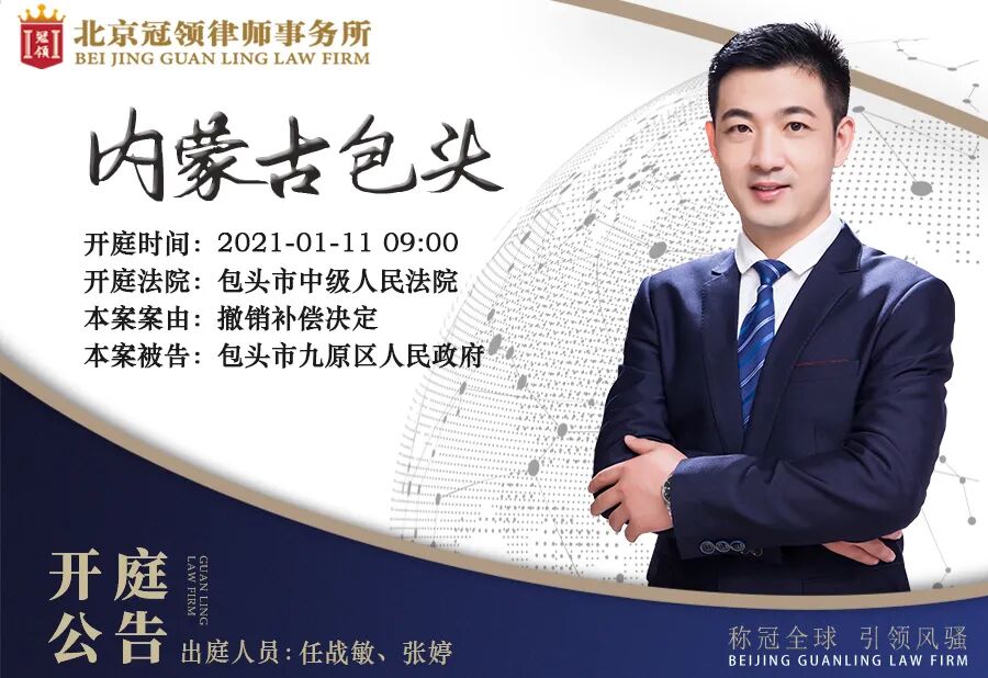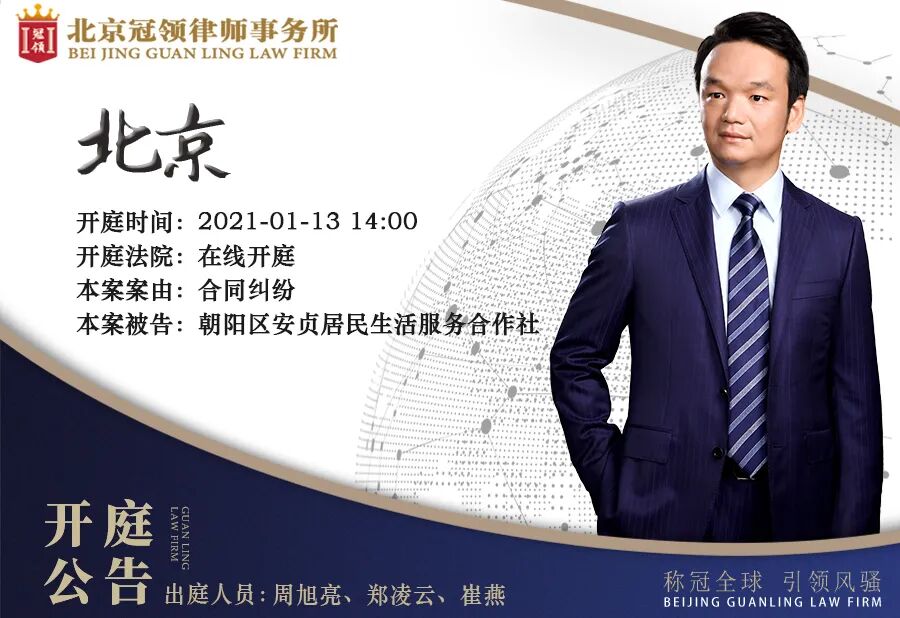 【开庭公告】冠领主任律师团队2021年1月11日-1月15日开庭时间表
