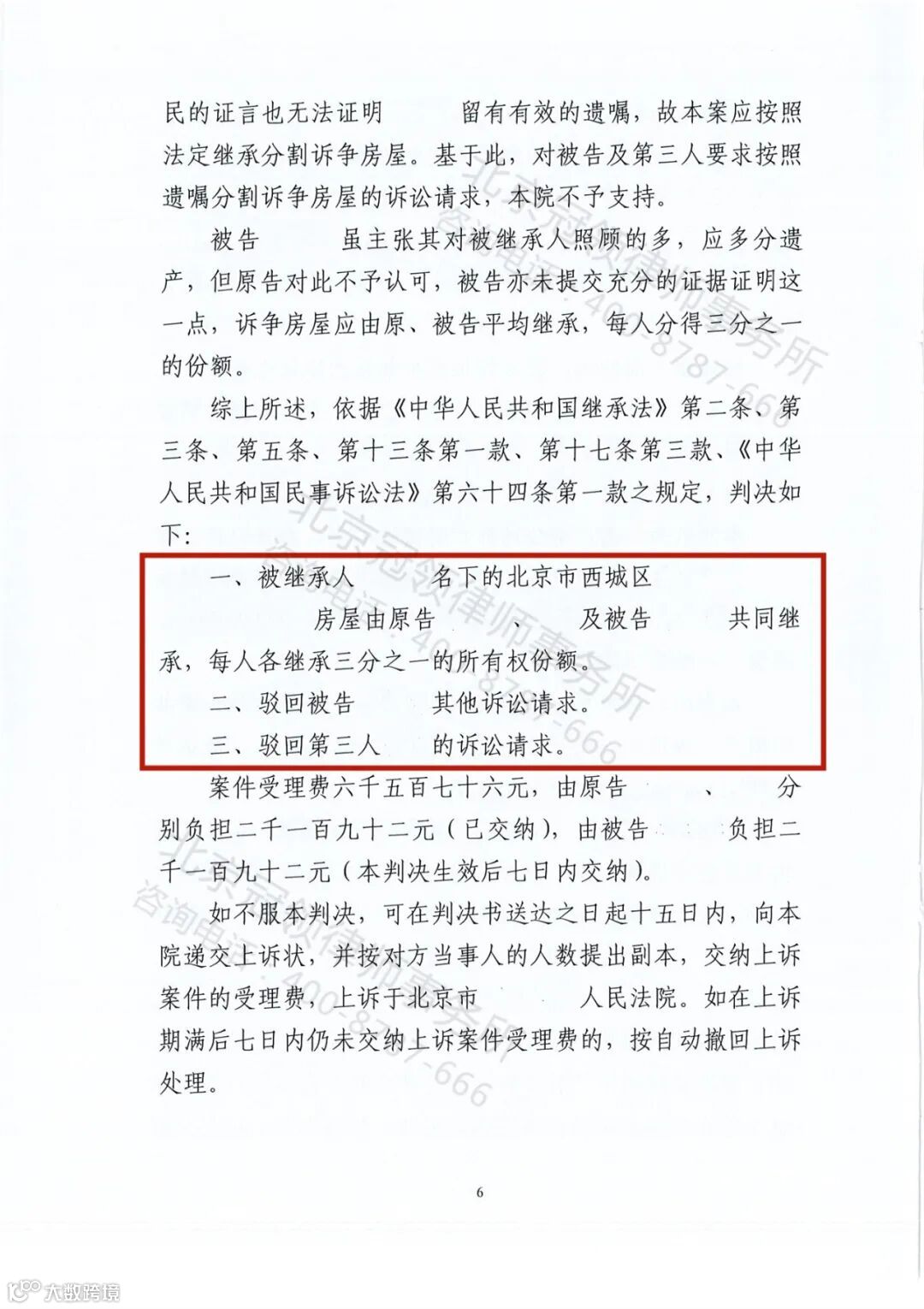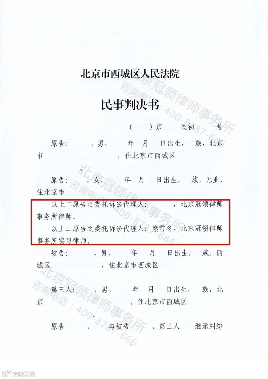 老大和老三不承认老二手中的遗嘱,委托北京冠领律师事务所熊雪冬律师提起了诉讼,请求法院依法平均分割其父母遗留的房屋,兄弟姐妹三人各占三分之一份额。
