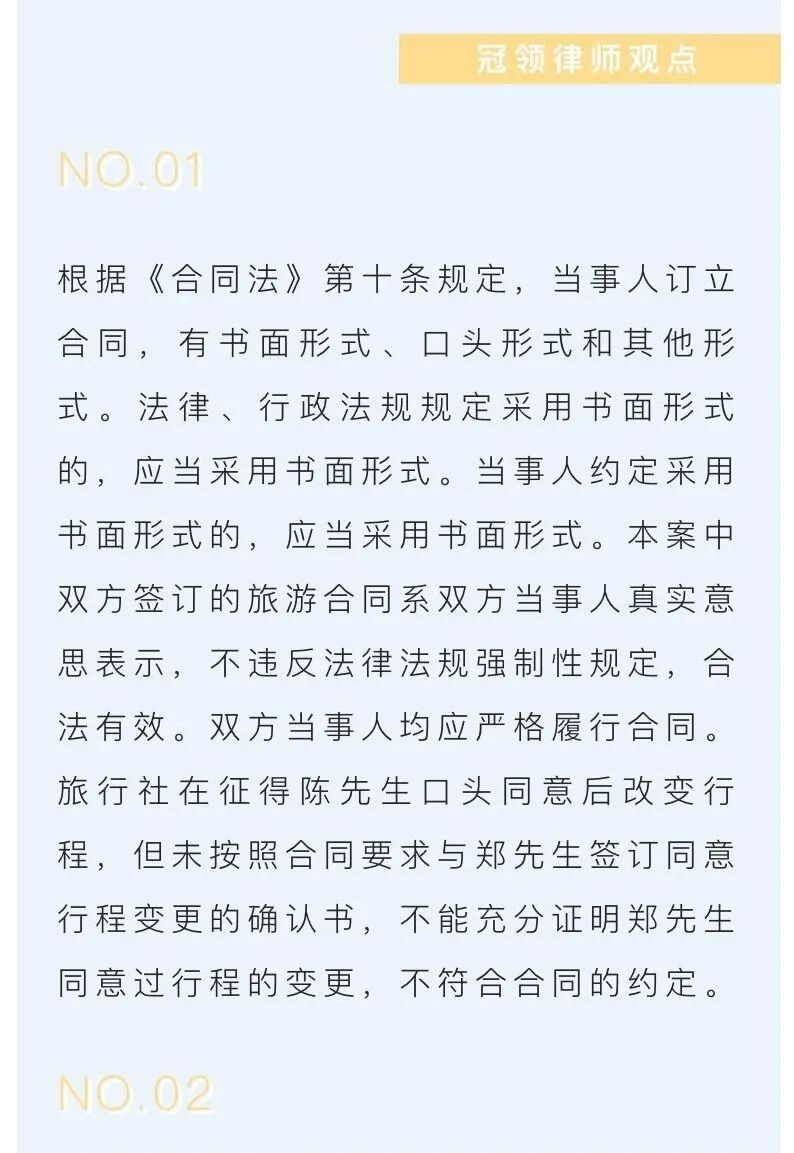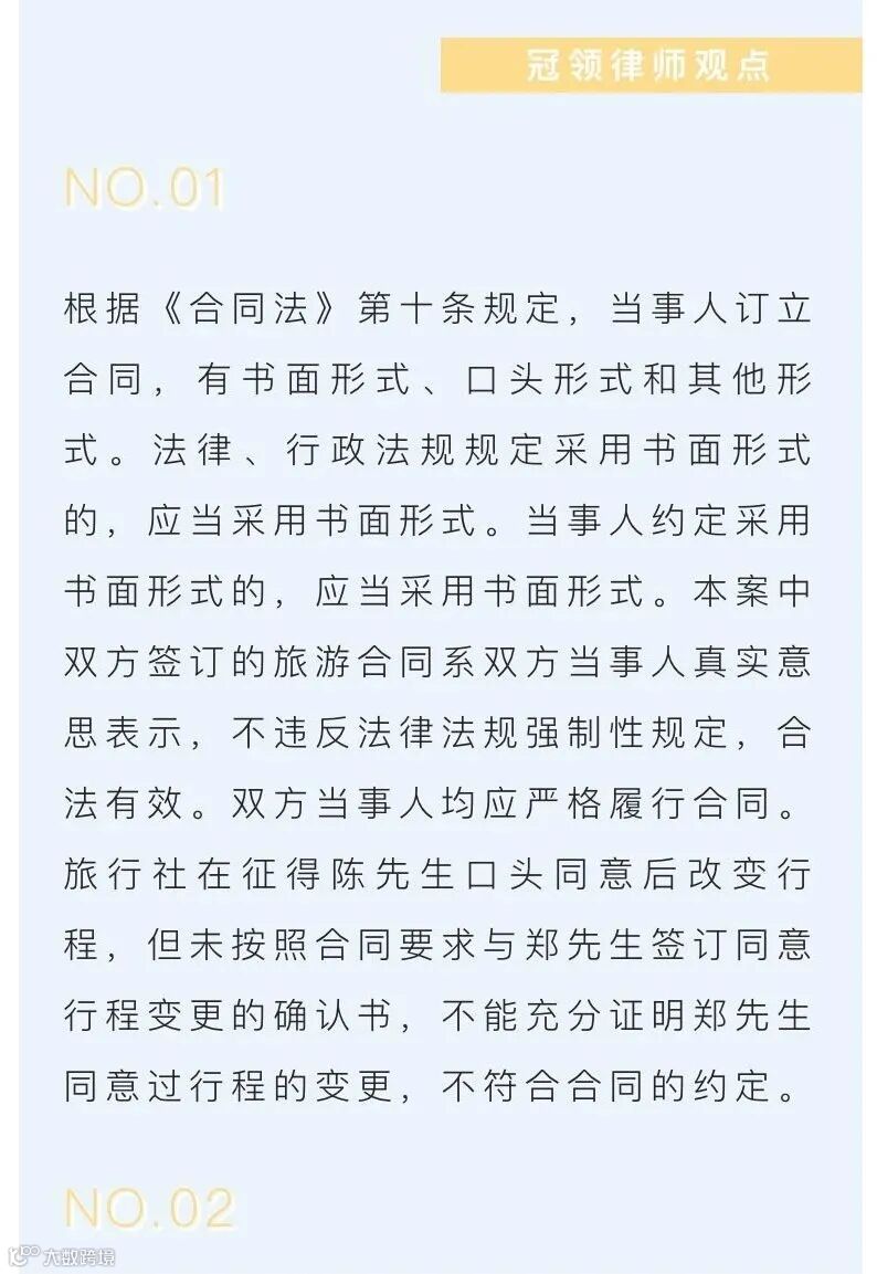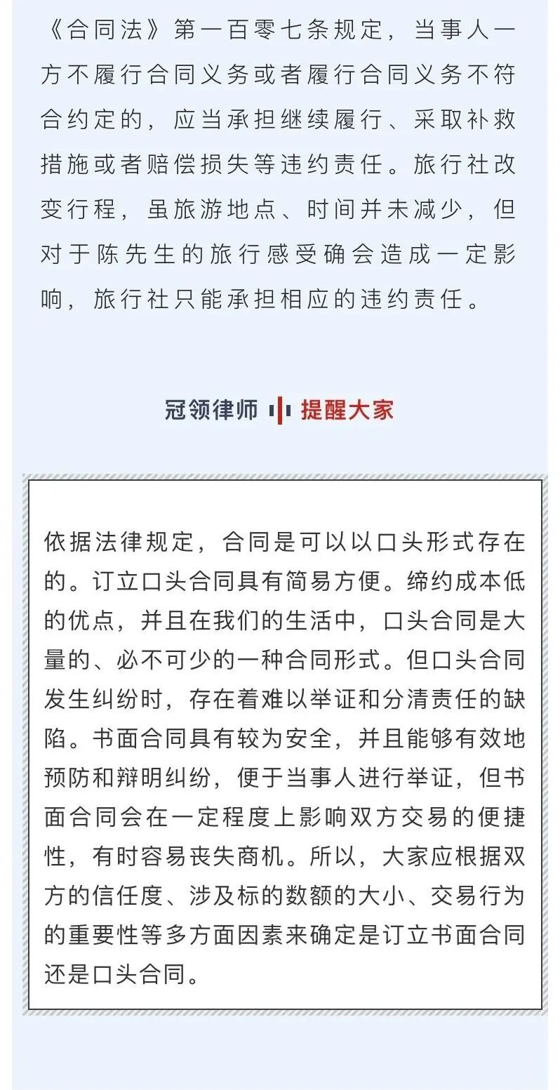 原来,当初郑先生和旅行社签的《合同》规定:郑先生参加旅行社组织的巴厘岛7晚8天之旅,旅行社按照合同和行程单约定的内容和标准为旅游者提供服务,不得擅自变更旅游行程安排,不降低服务标准;旅行社与旅游者双方协商一致,可以变更本合同约定的内容,但应当以书面形式由双方签字确认。