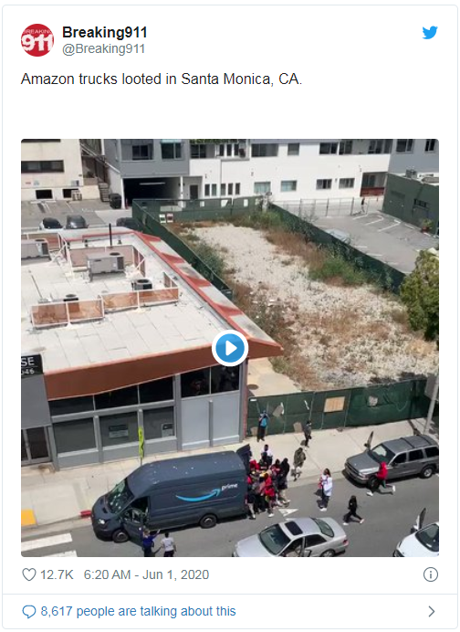 在骚乱中部分亚马逊快递货车被抢劫,于是亚马逊缩减交付量,并关闭了芝加哥、洛杉矶和波特兰等少数城市的交付站点。位于芝加哥和洛杉矶的亚马逊送货司机在上周六晚收到消息说,“如果您正在运送快递的途中,请停止配送并马上回家。如果您还未完成路线,请在可能的情况下把快递退回取货点。”