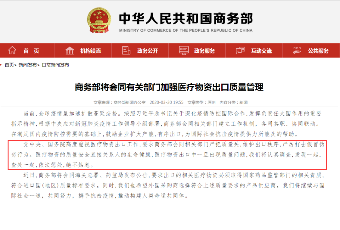 面对近期口罩、新冠病毒快速检测产品等抗疫物资出口后屡获负面评价这种情况,国家有关部门也开始加强医疗物资出口质量管理。据商务部消息,近日商务部将会同海关总署、药监局发布公告,要求出口的相关医疗物资必须取得国家药品监管部门的相关资质,符合进口国(地区)质量标准要求。