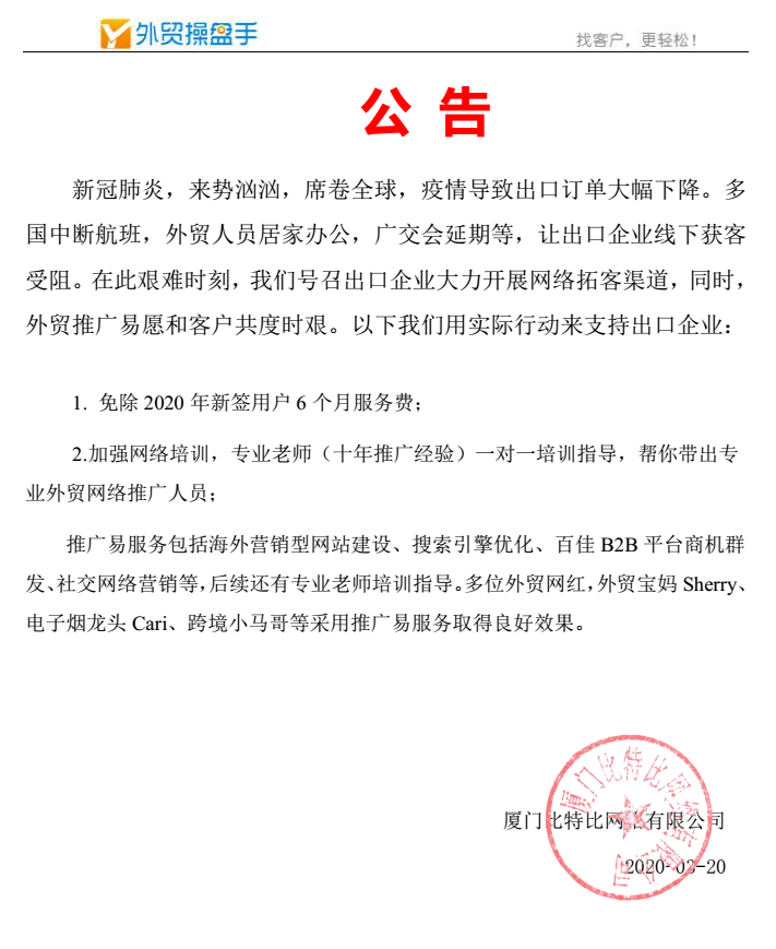 咨询外贸推广易,请联系:QQ 3185254735 电话:0592-5962973 朱小姐