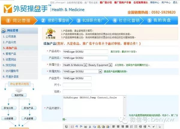选择了自己品牌一致的域名(www.yihiecigar.com),品牌意识非常重要,谷歌排名以品牌为最高准则。购买了推广易服务(包含建站、搜索引擎优化、B2B群发、社交媒体分享和网络营销培训),通过一系列的网络推广,网站访问量稳定在八九百IP,最高一天是2600多IP,询盘最多一天达到52个,忙得工厂订单接不过来。以下分享一下我是怎么做好网络营销的。