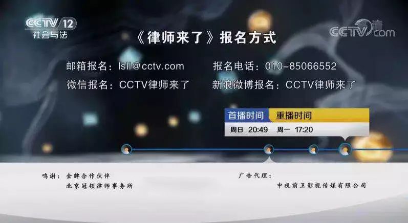 最后,预祝CCTV12《律师来了》第三季节目圆满开播!