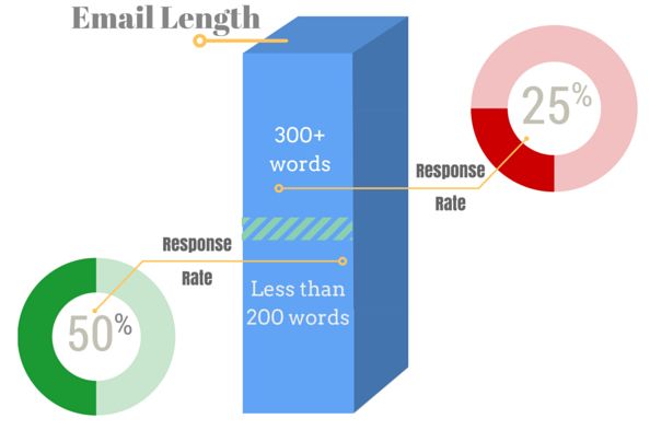 从上面的调查可以看出,相对较短的邮件得到的反应率反而更高。