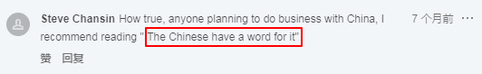 为了跟中国人做生意,还推荐“The Chinese have a word for it”这本书,还要看专门的网站,可以说是很拼了。