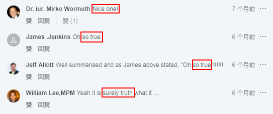 “Nice、so true、surely truth”满屏赞同的评论。