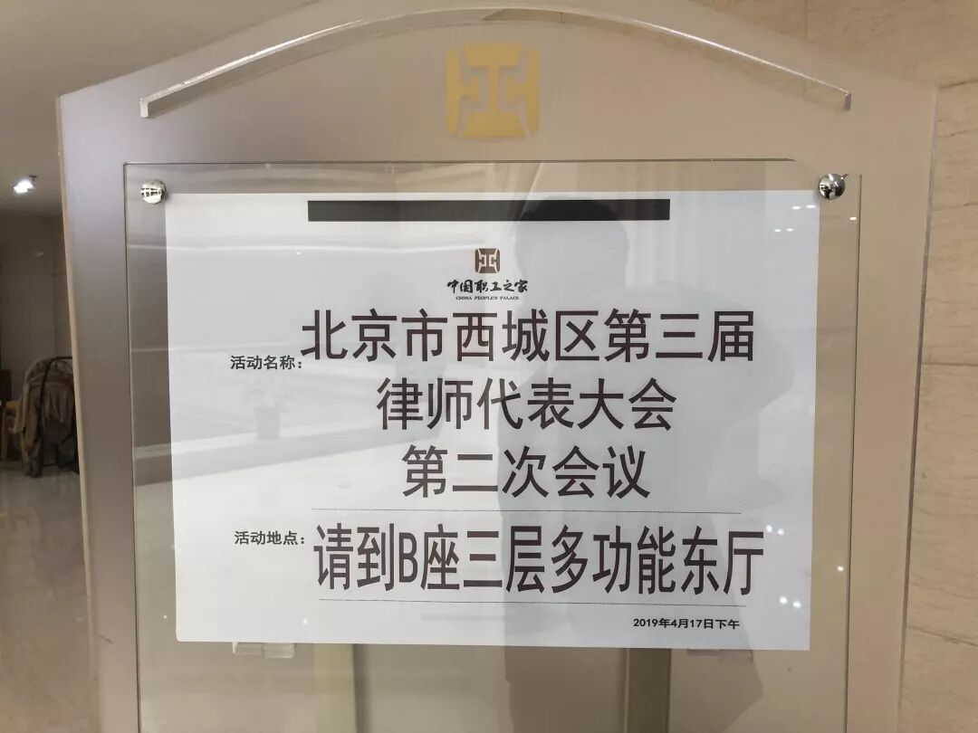 2019年4月17日下午,北京冠领律师事务所主任周旭亮律师应邀参加北京市西城区第三届律师代表大会第二次会议。