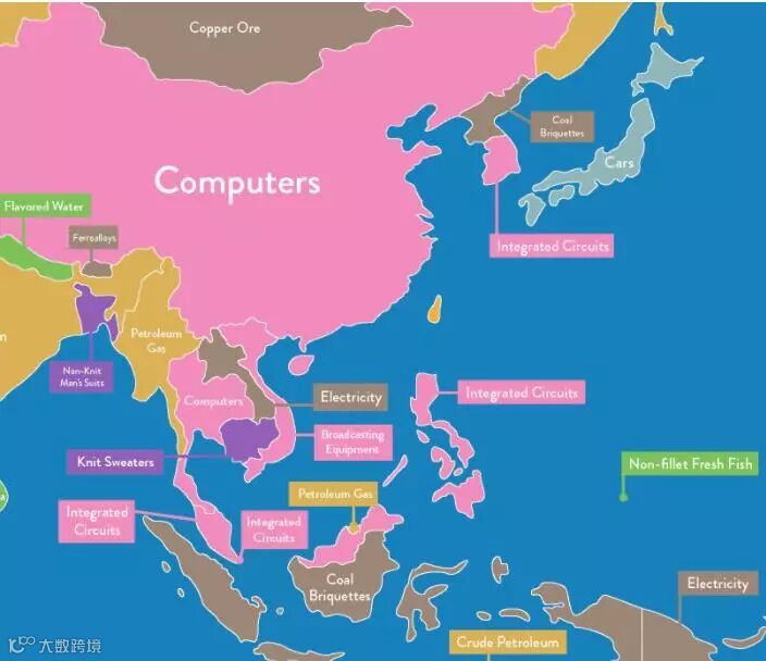 具体到每个国家的出口,中国计算机出口在全球占有重要地位,而韩国出口的主打产品是集成电路,日本是亚洲唯一一个以汽车出口占主导地位的国家。