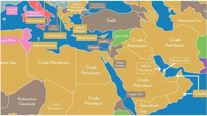 中东国家以出口石油、天然气、黄金为主。