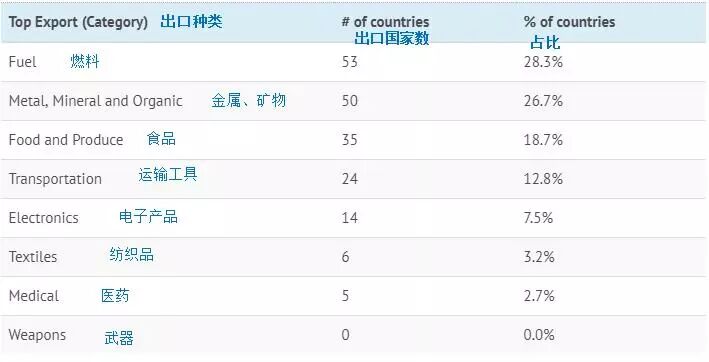 各国主要都出口什么产品?