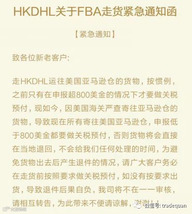 美国政府机关根据321法案(U.S. Customs Regulation 19CFR10.151. Sec 321)加大了对入境FBA货物清关的审核。