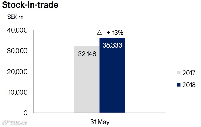 6月28日,H&M发布了2018年财报(2017年12月—2018年5月)。财报中,最引人注意的就是极高的库存,达到了363亿瑞典克朗(约合40亿美元,即268亿元人民币),同比增长了13%。