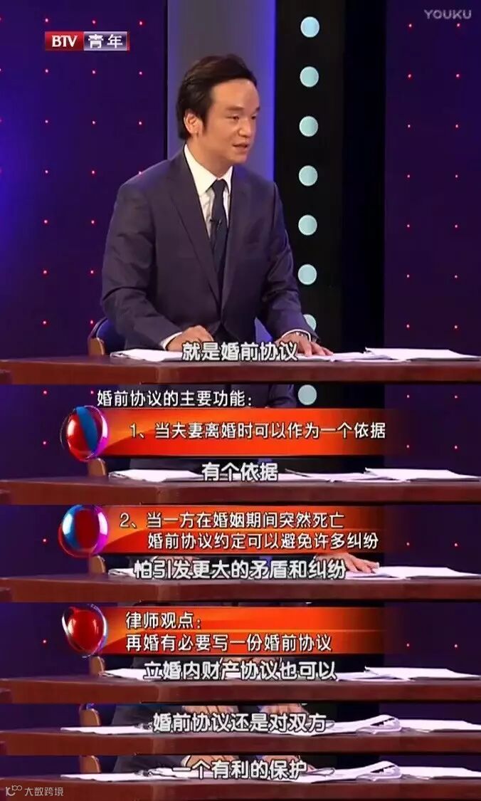 再婚家庭是否真的需要一份婚前协议呢?这样一份婚前协议会不会影响到再婚夫妻的感情呢?节目主创可辉提出了这样的疑问和担忧。对此,周旭亮律师也发表了自己的观点,他表示,无论是婚前协议还是婚内协议,签与不签都取决于夫妻双方的意愿和认可。这其实是一个观念问题,如果双方都认可这种方式,那么,应该就不会影响到夫妻感情。如果只是其中一方认可,一方不同意的话,那肯定会伤害夫妻感情。正如西方的AA制,有些家庭可以接受,有些家庭就接受不了。实际上,这种婚前协议的方式也是起源于西方国家,其作用主要有两点:第一,当夫妻离婚时可以作为财产分配等问题解决的一个依据;第二,当一方在婚姻期间突然死亡,婚前协议约定可以避免许多纠纷。对于再婚家庭,还是有必要签订一份婚前财产协议的,甚至是结了婚之后签订一份婚内财产协议都可以,因为,再婚夫妻要处理的并不只是两个人的问题,还有两个家庭的问题,因此,签订协议还是利大于弊的,但前提是双方要自愿、认可。