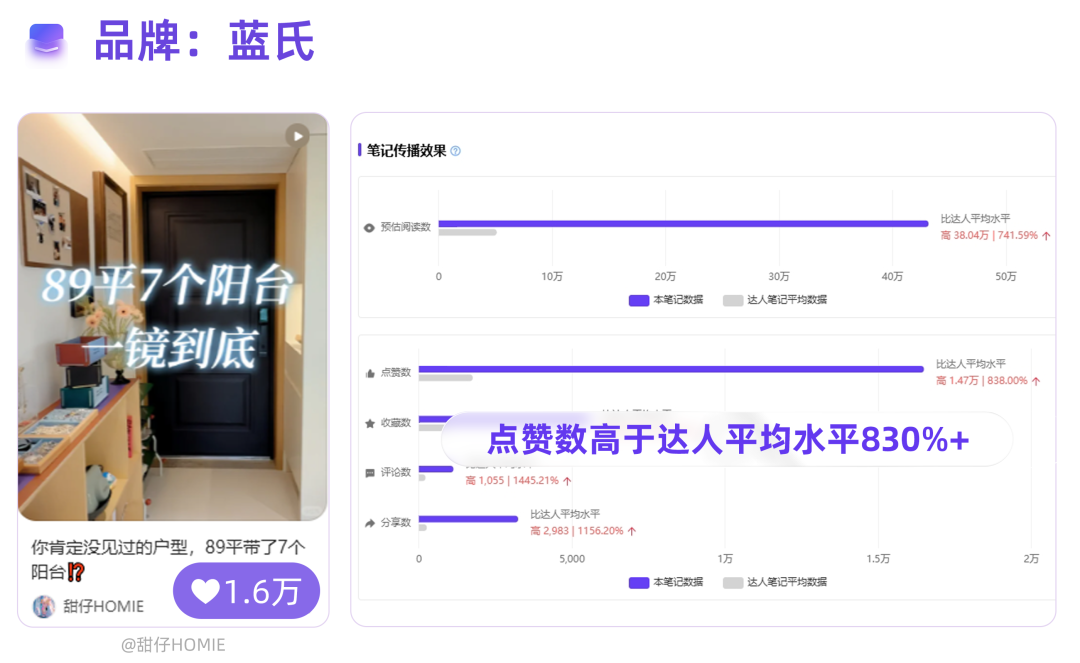 既增强了沉浸式观看体验,又高效传递产品优势,笔记点赞量达3万+,互动数据均高于平均水平。