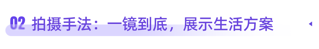“一镜到底”泛指模仿导游带看,通过流畅运镜,清晰展示空间的功能分区和细节布置,用户观看时会产生“跟着学就能拥有同款舒适” 的代入感。