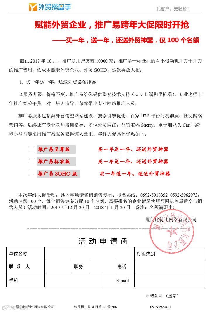 截止2017年10月,推广易用户突破10000家。推广易一如既往看不惯动辄几万十几万的推广费用,低成本赋能外贸企业、外贸SOHO,这次再放大招: