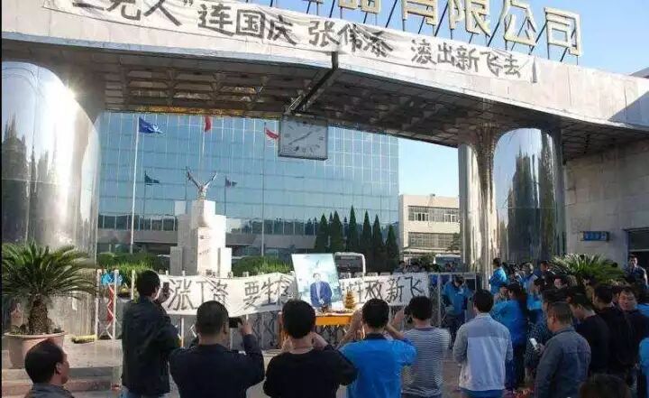 2012年10月12日中午,新飞上万员工把创始人刘炳银的遗像摆在新飞总部前,大喊“强烈要求改善新飞员工收入……强烈要求公司董事会驱除无德、无能、无为的‘三无人员’……”集体罢工抗议“十年不涨工资”。
