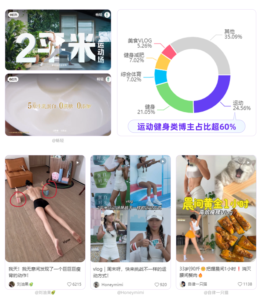 通过线下打造微型运动场+线上投放运动健身类博主,将产品定位为“碎片化体重管理”场景中的健康补给伙伴,在运动间隙提供能量与营养支持(0蔗糖,0添加,控糖补蛋白),助力目标达成。