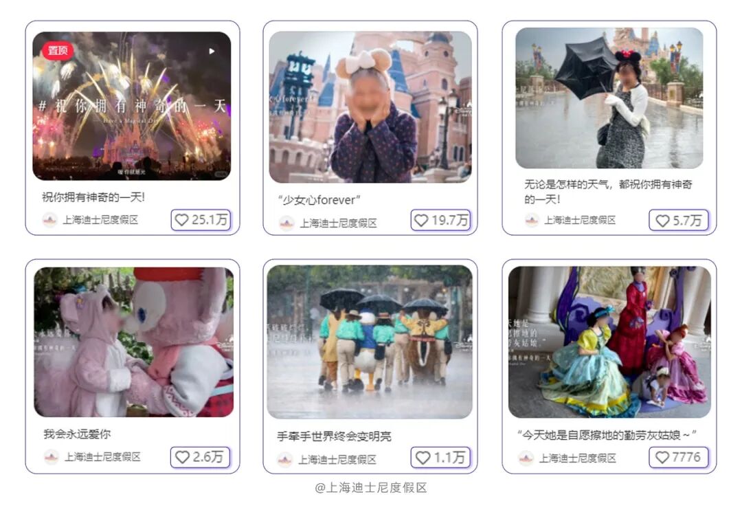 活动上线首月内,上海迪士尼官方账号新增粉丝同比上月增长122%+,新增分享增长839%+,官方TVC笔记互动量近30W,游客UGC海报几乎篇篇爆文,用户评论“感动、热泪盈眶、快乐老家、治愈”等。