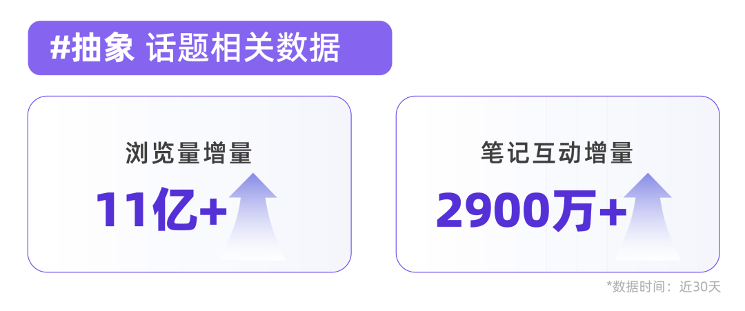 千瓜数据显示,近30天“#抽象”话题浏览量增量超11亿,笔记互动增量超2900万+。