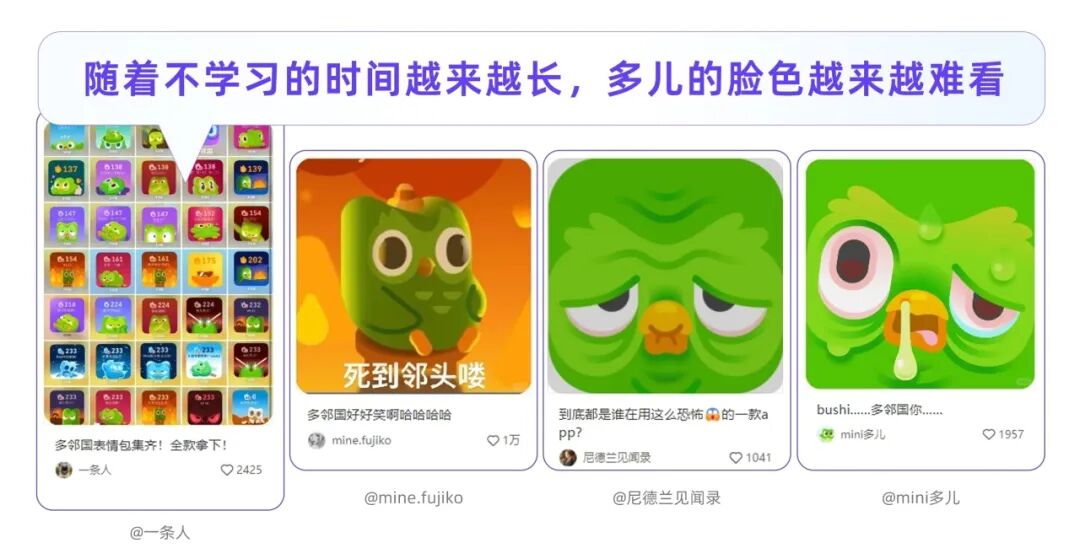 今年,不少人被「多邻国」的绿色小鸟刷屏,这只昵称“多儿”的猫头鹰,表情贱嗖嗖,配合欠扁的催学话术,让学习变成生死竞速。凭借“变脸”绝技,引发网友集体造梗、玩梗,成功晋升为“混乱邪恶”顶流。
