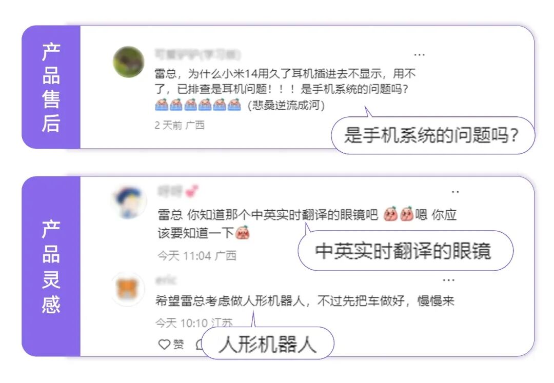 同时,雷总的评论区还充当了售后、客服、产品经理等多角色: