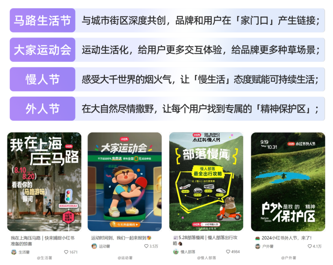 小红书同样洞察大众情绪,从明星综艺、泛生活直播到IP造势,视野由聚焦到广角,不断刷新对鲜活人生的理解,给予品牌极具「活人浓度」的社区氛围。
