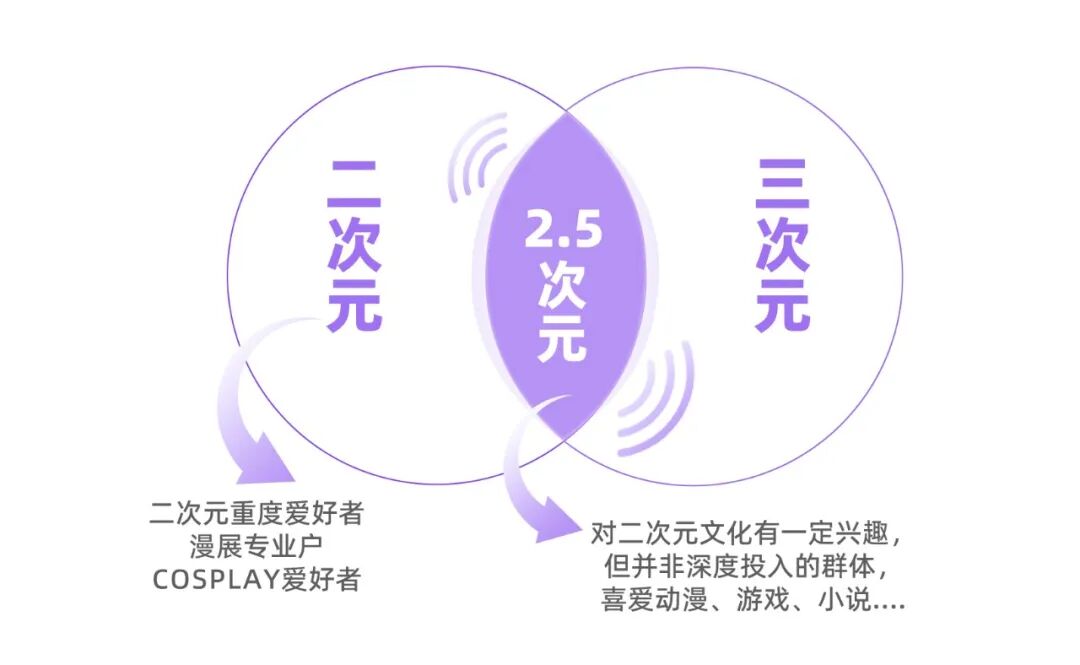 「2.5次元」涵盖了更广泛的受众,包括对二次元文化有一定兴趣,但并非深度投入的群体,涉及漫画、小说、动画、影视、游戏等形式。